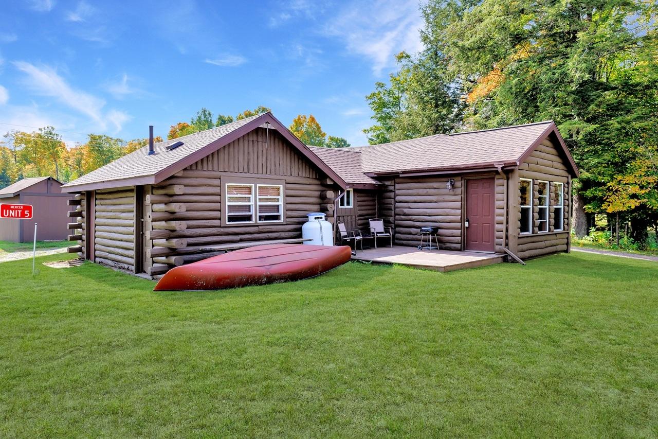 Full log cabin at Lake Bastine Condominiums on the famous Turtle Flambeau Flowage. Enjoy shared access to 330 ft shoreline on 2.17 acres, w/common pier, boat launch, fish-cleaning shed w/running water & sandy beach for swimming. Cozy 3-season cabin features living room w/free standing gas fireplace, French doors opening to a bright family room w/breathtaking water views, fully equipped kitchen w/refrig, stove, cookware & utensils, making it move-in ready. Includes 1 BR, bath & additional room currently used for storage that could easily serve as guest overflow. Outside open sun deck is perfect for morning coffee or evening sunsets & 2 attached storage sheds. The cabin comes fully furnished so you can start enjoying your retreat right away. Condo fees $67/month cover grass mowing, plowing & garbage, allowing you to spend your time relaxing & having fun. A furnished log cabin on the Turtle Flambeau Flowage is truly a rare opportunity—don’t miss your chance to own your piece of paradise!